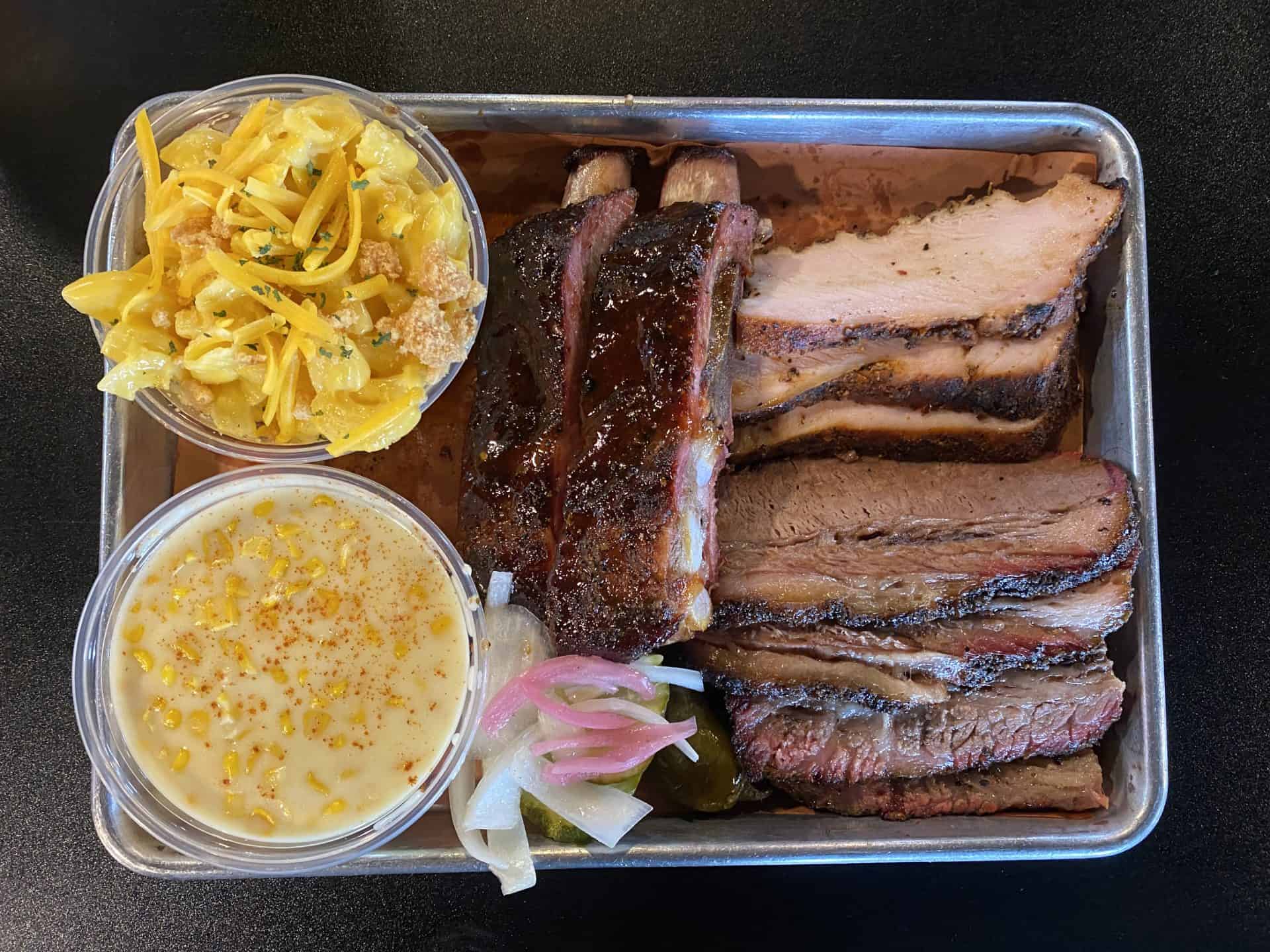 The chicken fried steak comes out fried to perfection, and the beautifully seasoned thin layer of breading perfectly complements the tender and flavorful steak. As if this wasn’t enough, Paco comes back with a tray of their barbeque. “Our barbecue’s smoked every day,” said Paco. “Our brisket takes anywhere from 10 to 12 hours every day. Cut in half, I mean, nice prime brisket.”