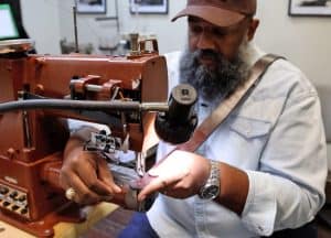 With his wife Rachelle by his side and a few faithful employees helping hold down the fort, Odin has opened two stores, and he wouldn’t be here if it wasn’t for other leatherworkers who helped him by sharing knowledge and tooling techniques. “I may have met one or two old guys or gals out there who just don’t want to share with you,” said Odin. “They do not represent the whole. Most of them, if you walk in a shop and you say, ‘Hey, my name is Odin Clack, I have interest in your craft, the thing that you’ve been dedicating your life to for the last 30 years, I would love if you allow me an opportunity to learn from you,’ they’re very willing to help you. They just want to see that you care. They don’t consider sharing with you wasting their time. They consider you being lazy. They consider you being not willing to figure out things on your own and try. That’s a waste of their time.”