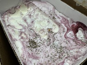 Ice cream is always a visual experience between all the different kinds, but this selection is crazy. You’ve got the full spectrum of the rainbow here. “We’re going to try the Baa-Baa Blackberry, which is a blackberry swirl with goat cheese and thyme,” said Margaret. “Yes, that is the thyme on top. And I would barely touch that just so you don’t get too much, because you just want that little bit to make it taste.”