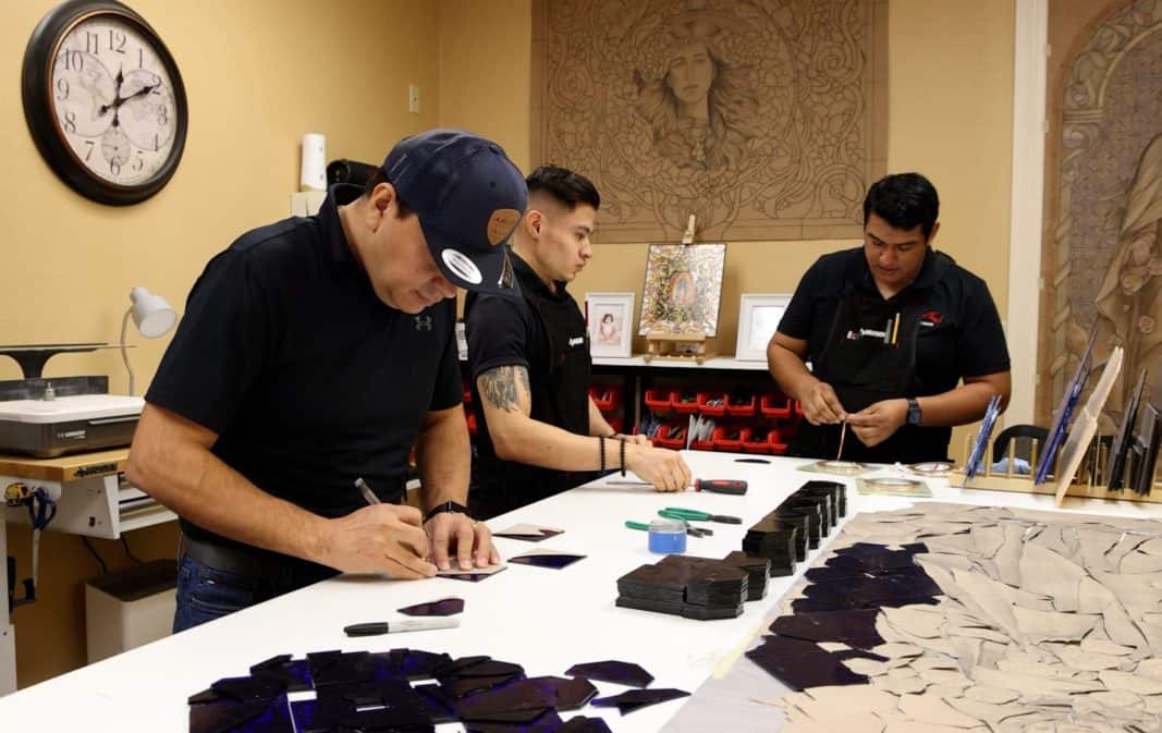The process it takes to create these windows is a bit daunting. From creating a life-sized drawing of the work to cutting out each individual piece of glass, painting pieces of the glass, and putting it all together, every piece truly is a masterpiece. “What we do is we take the stencils from the design, we cut it up with special scissors to give the space in between the pieces where the copper foil is going to be put,” said Hector. “And then Juan Carlos cuts each piece by hand, and then they get painted and then they’re going to get assembled. These are going to be flowers and we don’t want them to look like big pieces. We want them to look as naturalistic as possible, so we put the highest amount of detail that we can.”