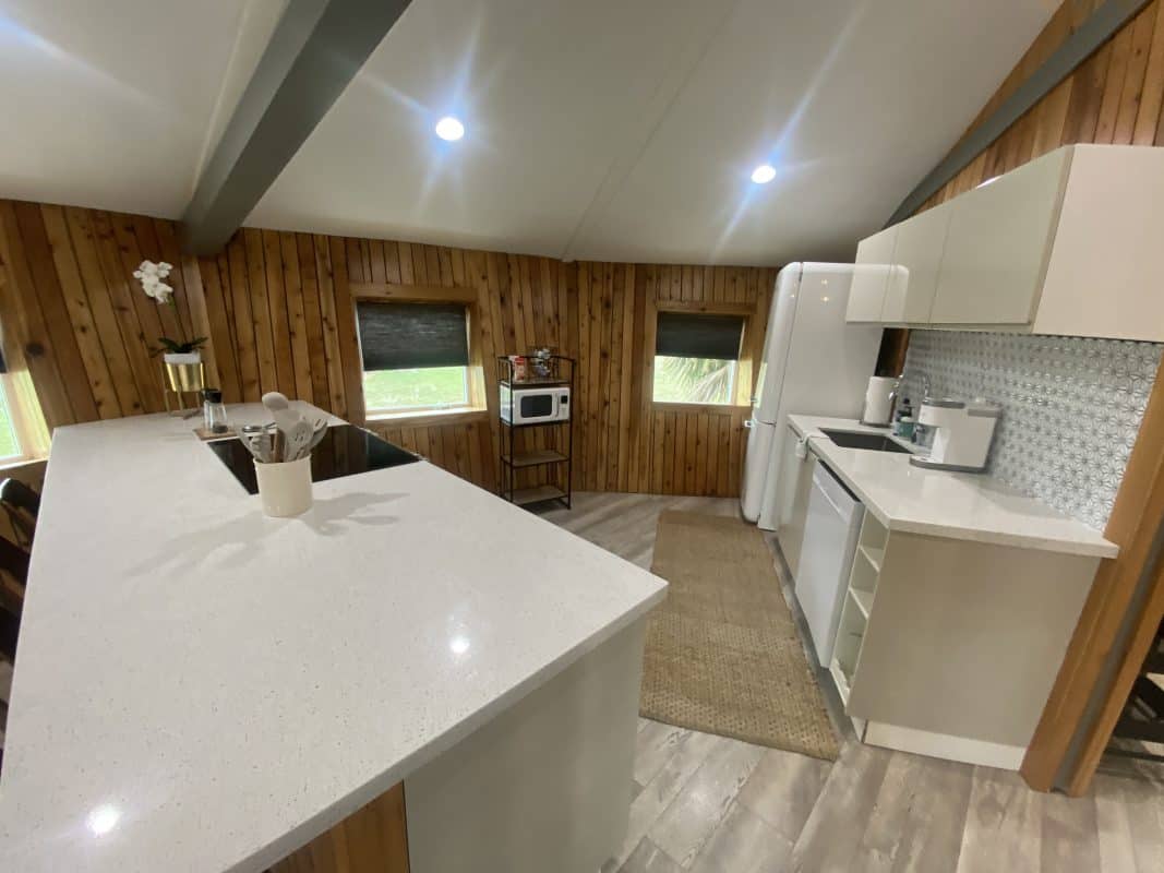 And in case you’re wondering, the kettle house does not boil over. “People are so… They’re like, ‘I can’t stay in a metal house. It would be too hot,’” said Ashley. “With all this spray foam insulation, new windows, and then the AC system, this is the coolest house we have. Seriously.”