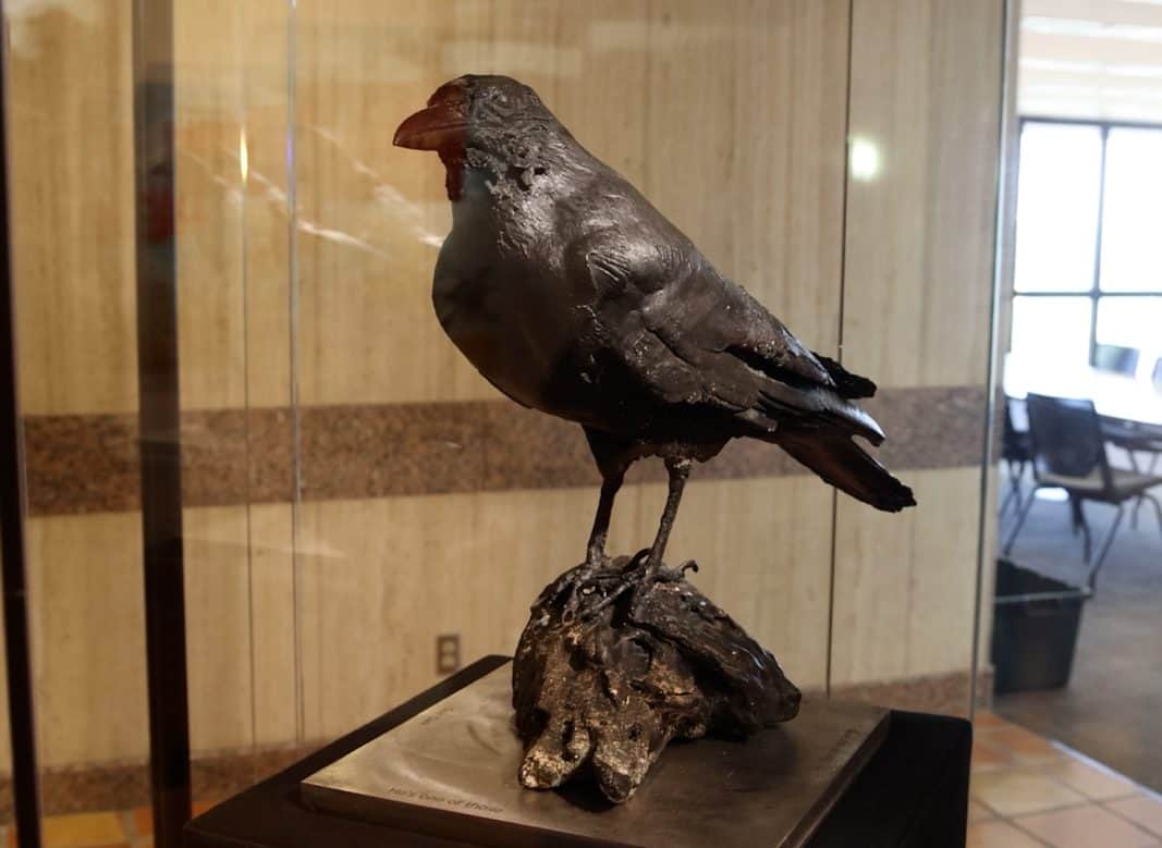 While movies and media have a massive presence here, there’s also an incredible photography collection and you can find things from many Texas singer songwriters like Gary P. Nunn’s iconic lyrics to London Homesick Blues, Jerry Jeff Walker’s hat, and even Guy Clark’s ashes. “For any true Texas music fan, this is a must see,” said David. “These are the last mortal remains of Guy Clark, the Texas Singer-songwriter. A piece done by another singer-songwriter, Terry Allen, who donated it to us. Willed his ashes to Terry and wanted Terry to make a sculpture somehow using those ashes. If you look real close on the rock that the crow is standing on, and even on some of the feathers of the crow, you’ll see these gold flecks, kind of gold dust. And those are Guy’s ashes. He opened up the crow’s chest, and put the rest of guy’s ashes inside the bird. For Guy Clark fans, this is a place of pilgrimage for everyone to see.”