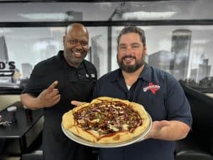 What makes Fat Floyd’s unique is what he does with his BBQ, putting it on a pizza pie. “I think it’s the greatest thing that we have,” said Levi. “And it took people a little while to catch on because they come in, like, ‘Barbecue pizza?’ The meats that we smoke in the back, this awesome world-class brisket that I’m talking about, that goes on the pizza. Sausage that we smoke in the back, it goes on the pizza. The sauce that we make from scratch with 22 ingredients, it goes on the pizza.”