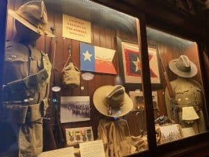 A picture behind the bar showcases a younger Roosevelt in his uniform, gathering his cavalry unit for the war effort. “This was actually here in San Antonio during the training,” said Pena. “Down on Roosevelt Street, there’s a Roosevelt Park, that’s actually where the training was set up. So this was there in 1898 before they left for Florida.”