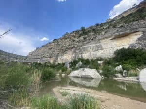 Down by the water, you can experience one of the prettiest parts of the state. “This is one of the favorite spots on the ranch,” said Joe. “Everybody comes down and sits on that rock and wades in the Pecos River and goes swimming or fishing, and this is a great spot. This is truly at the confluence of the creek and the Pecos are just north of us here. So this water is now starting to get a lot of fresh water in it, so it’s starting to clear up instantly.”